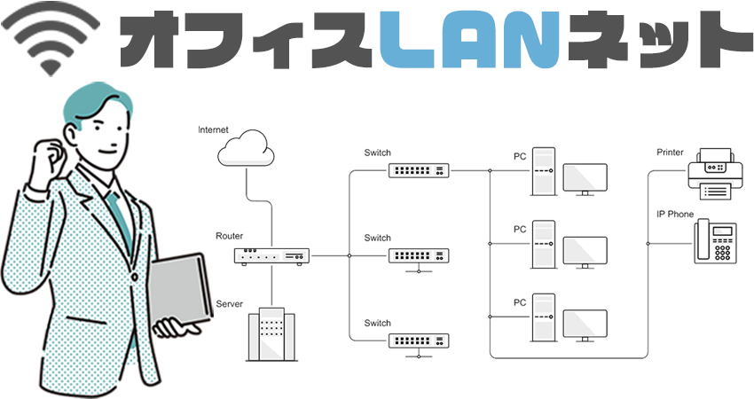 オフィスLANネットでは、LAN配線工事と同時に、電気工事、OAフロア、オフィス内装、オフィス家具、監視カメラ、オフィスネットワーク構築から入退室管理システムなど、オフィスのネットワークをワンストップでお手伝いします。